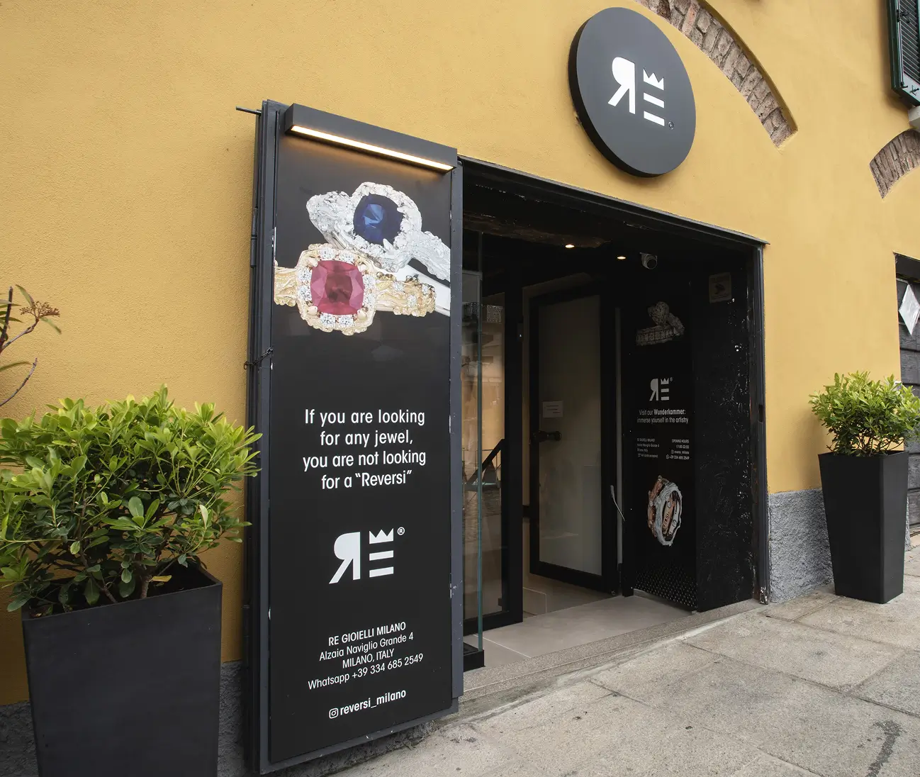 Nel 2023 Reversi ha inaugurato la sua prima boutique a Milano, situata in via della Spiga, nel cuore del Quadrilatero della Moda. La posizione esclusiva riflette l’identità del marchio e il suo posizionamento nel mondo dell’alta gioielleria italiana.