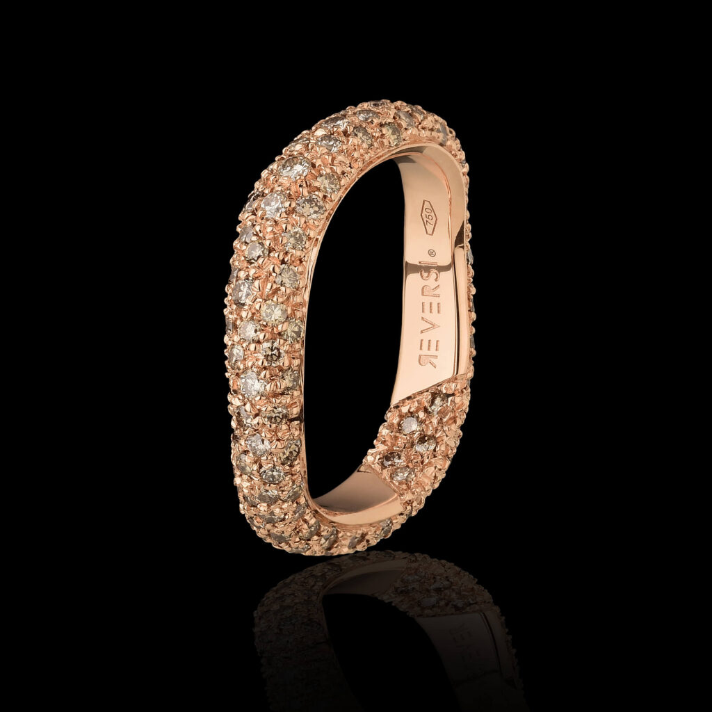 The REVERSI Certification is the official guarantee issued by Tiziano, attesting to the quality of the jewelry. The document states the weight and type of gold used; the quantity, characteristics and carat of the diamonds, as well as the type and carat of the other gemstones used.
