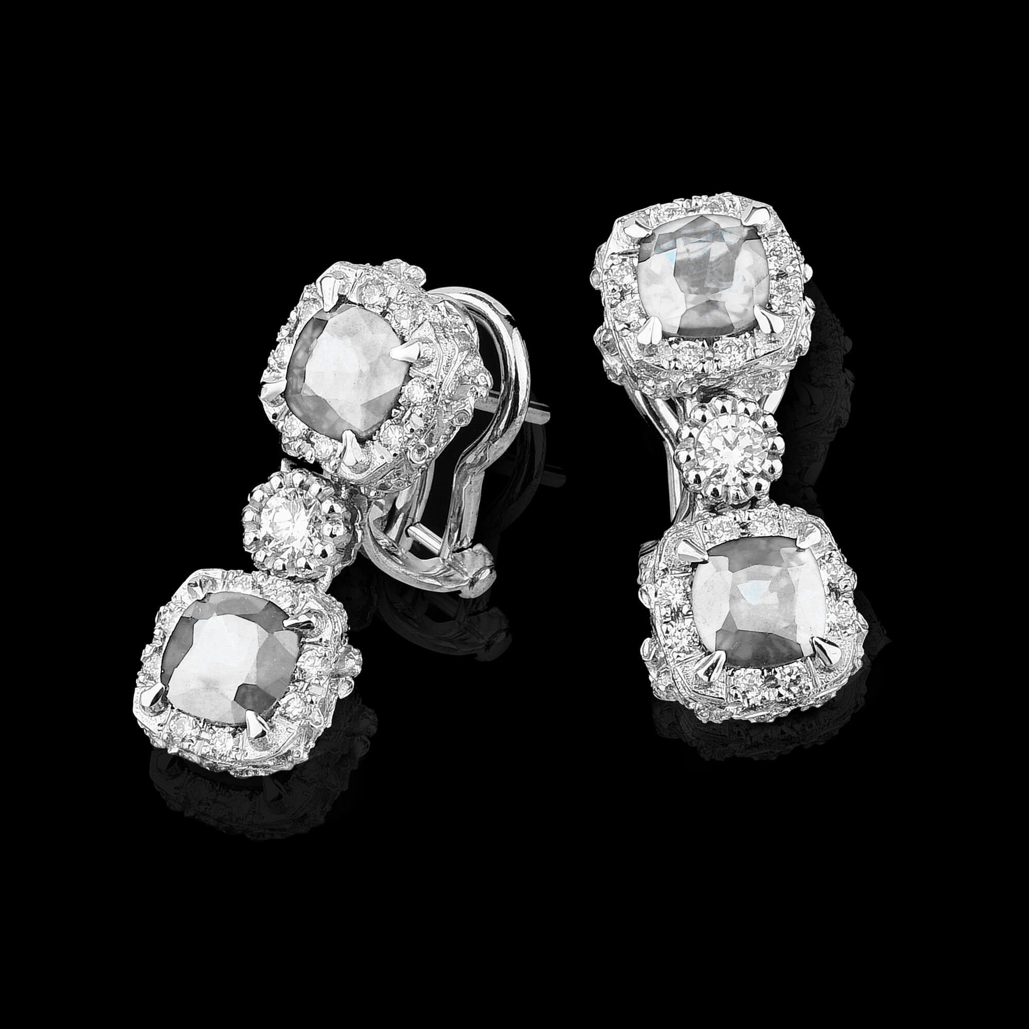 Gli orecchini Minerva sono realizzati con diamanti naturali o pietre preziose naturali centrali taglio Cushion. Impreziosito dalla lavorazione Tree of Life con diamanti naturali.